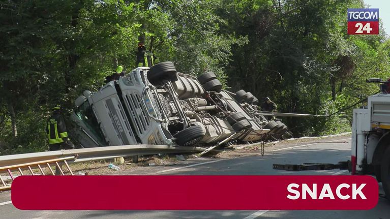 L'autoarticolato è sbandato su una curva lungo la SP32dir