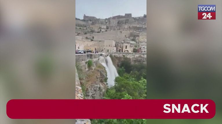 Nubifragio a Matera, la spettacolare cascata tra i Sassi