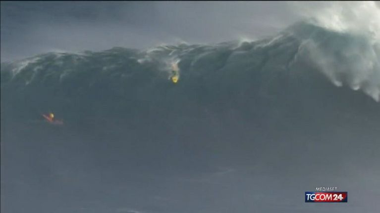 Onde pazzesche alle Hawaii: il surfista se la cava