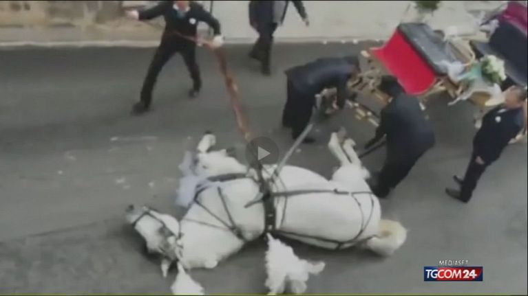 Palermo, cavallo che traina la carrozza degli sposi stramazza a terra per la fatica