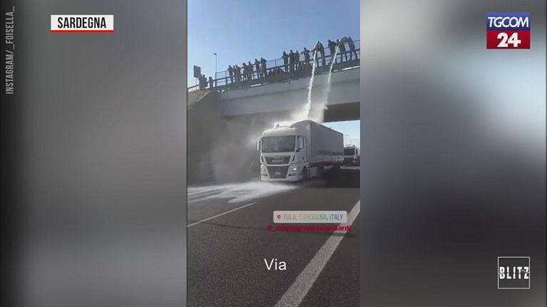 Pastori sardi in rivolta: litri di latte lanciati dal cavalcavia