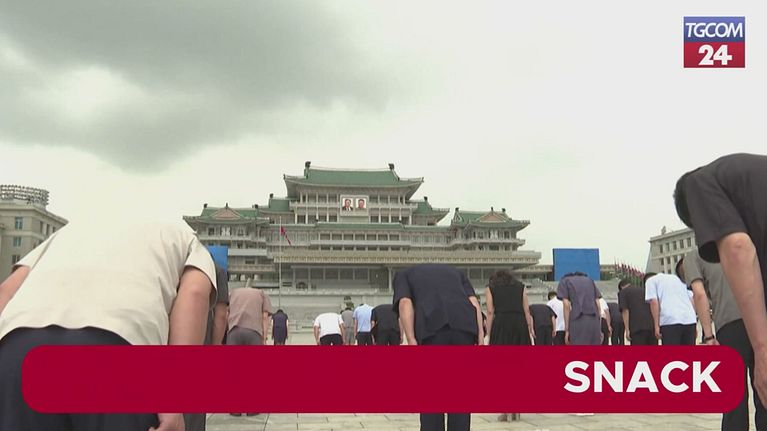 L'omaggio dei nordcoreani al fondatore del Paese: minuti di silenzio e mazzi di fiori deposti davanti alla gigantesca statua di bronzo