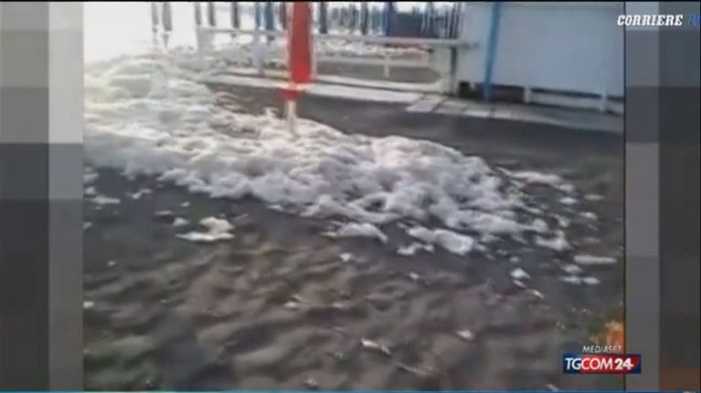 Schiuma nella spiaggia di Fiumicino