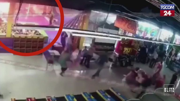 Le immagini delle telecamere di sicurezza del centro commerciale in Russia