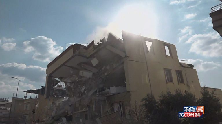 Terremoto in Turchia, il crollo di un palazzo a Islahiye durante il collegamento della nostra inviata