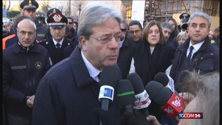 Terremoto, la visita del premier Gentiloni a Norcia