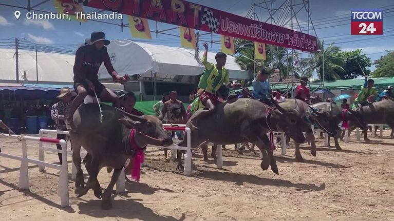 Thailandia, a Chonburi le spettacolari corse dei bufali d'acqua per celebrare il raccolto