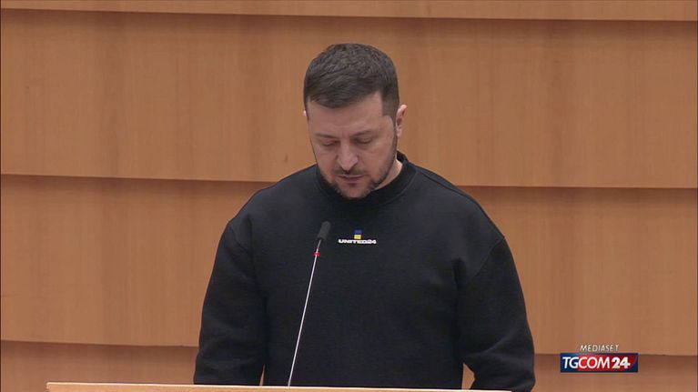 "Stiamo difendendo l'Europa, la nostra Europa, dall'attacco della tirannia" dice Zelensky al centro dell'emiciclo del Parlamento europeo. L'intera aula di Bruxelles lo accoglie, in piedi, riservandogli un potente applauso. Il presidente in guerra parte dal principio, dal primo punto che oggi deve tenere unito il Vecchio Continente davanti a un nemico comune.
