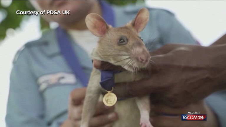 Il roditore, originario della Tanzania, è stato addestrato dall'ente benefico belga Apopo, secondo il quale ha aiutato a sminare 225.000 metri quadrati di terreno nei suoi cinque anni di carriera, l'equivalente di 42 campi da calcio.