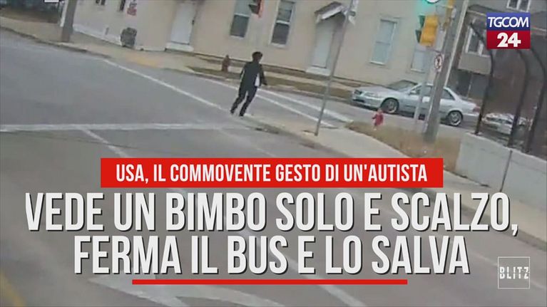 Vede un bimbo solo e scalzo, ferma il bus e lo salva