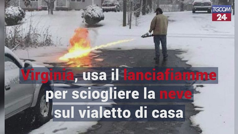 Virginia, usa il lanciafiamme per sciogliere la neve sul vialetto di casa