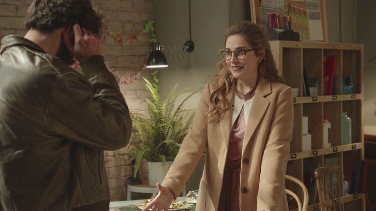 Julia mostra a Tirso il suo primo mobile, il tavolino "Kiros", e lo invita a bere con lei un bicchiere di vino dopo la festa.