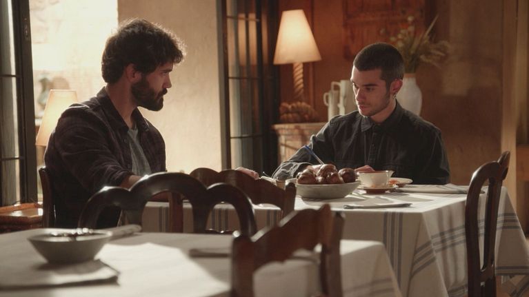 Erik è molto nervoso per la visita in carcere a suo padre e Tirso tenta di rassicurarlo.