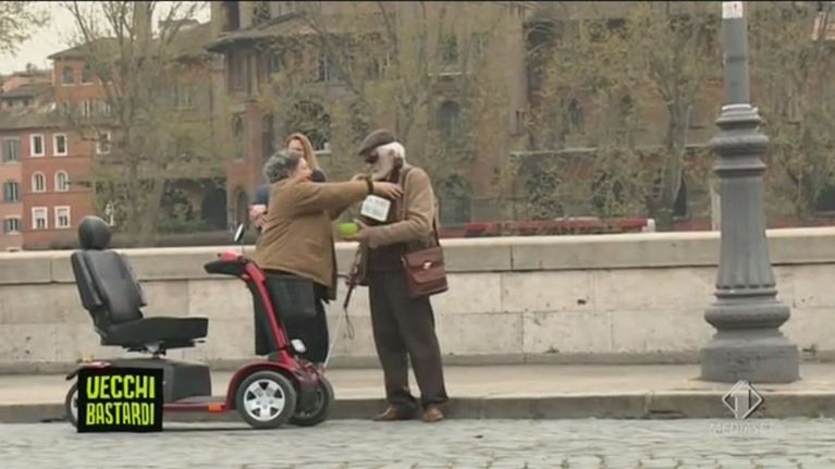 Di soppiatto i due vecchietti escono dal bagno...e si risistemano l'abbigliamento. L' osservatore resta basito.