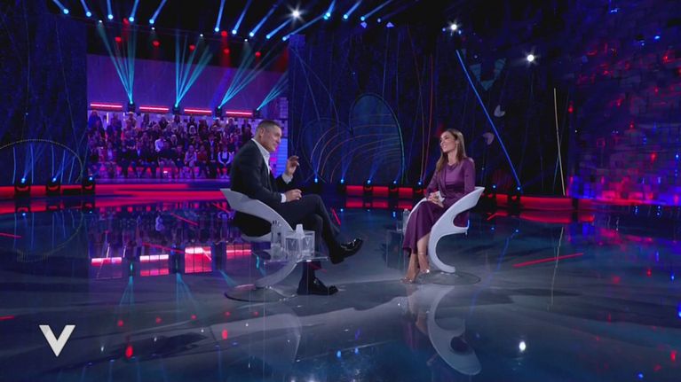 Vincenzo De Lucia nei panni di Silvia Toffanin apre una nuova puntata di Verissimo e intervista la vera Silvia Toffanin.
