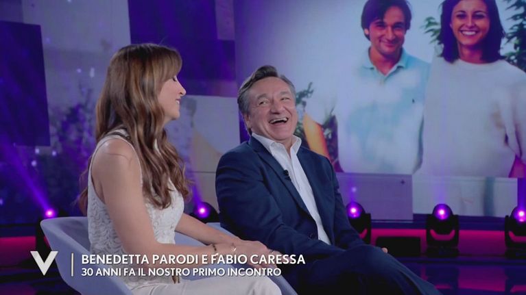 Benedetta Parodi e Fabio Caressa parlano del loro primo incontro e della nascita del loro amore.