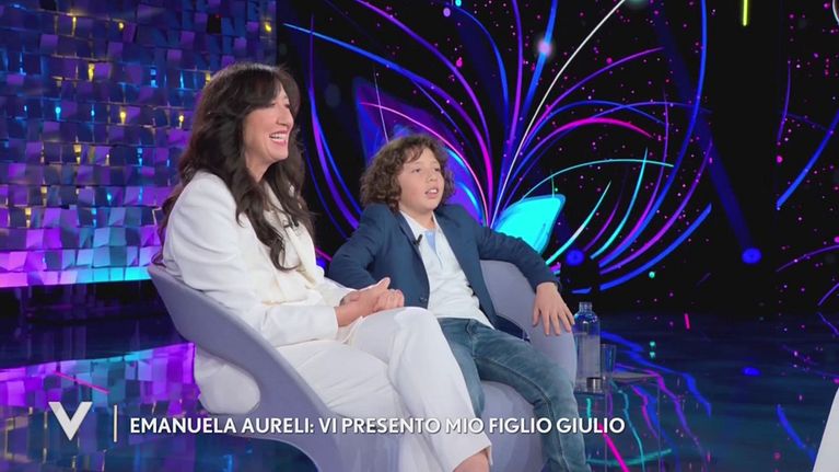 Emanuela Aureli è raggiunta nello studio di Verissimo dell'amatissimo figlio Giulio.
