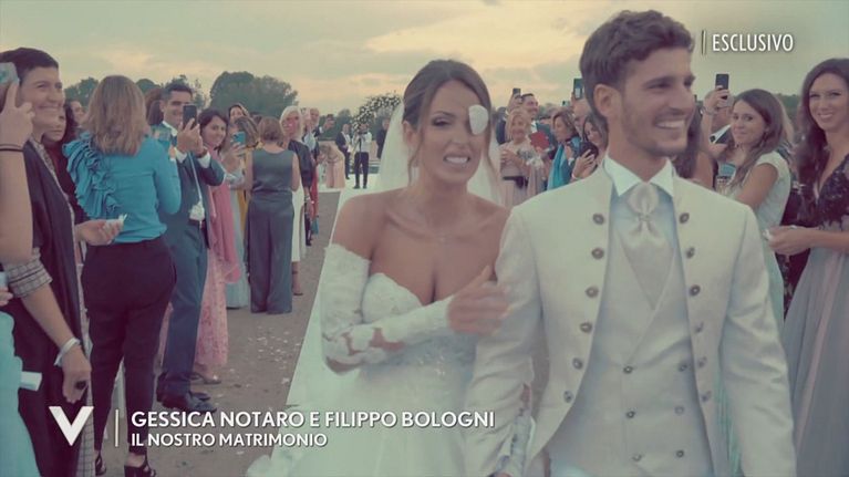 Gessica e Filippo rivedono, per la prima volta insieme al pubblico, le immagini del loro matrimonio.