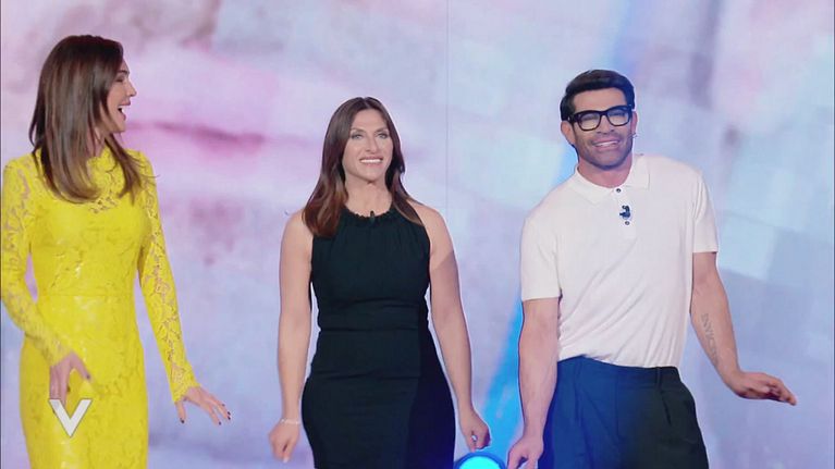 Gianni Sperti e la sorella fanno il loro ingresso nello studio di Verissimo sulle note di Annalisa.
