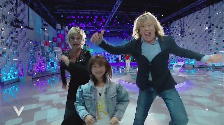 Enzo Paolo Turchi e Carmen Russo si scatenano a passi di danza insieme alla loro piccola Maria.