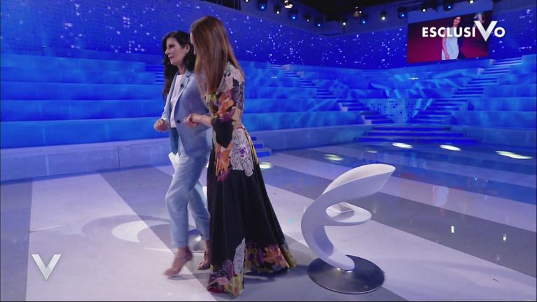 Silvia, dopo aver ascoltato la triste vicenda di Pamela Prati, l'accompagna fuori lo studio.