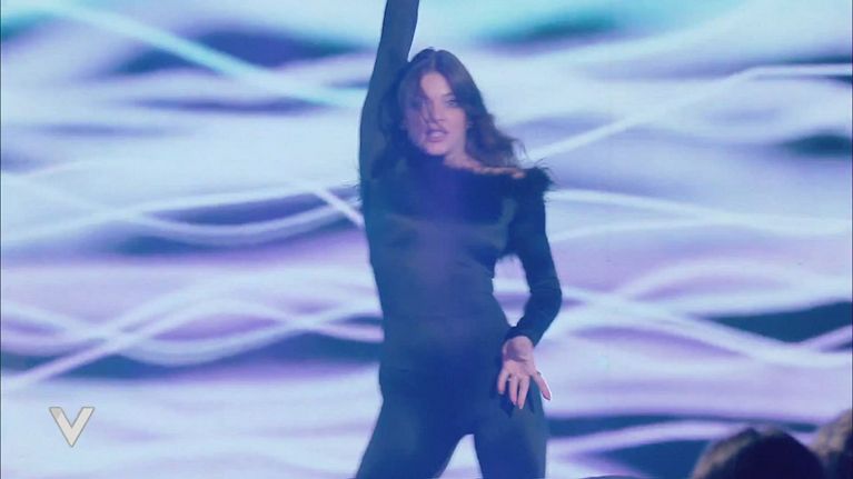 Aurora Ranvestel si esibisce nello studio di Verissimo con un energico cha cha cha.