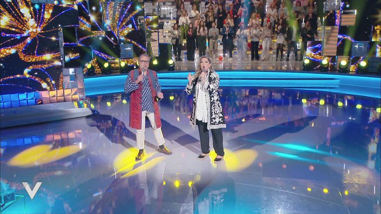 Romina Power e Yari Carrisi Power si esibiscono nello studio di Verissimo eseguendo un mantra con musiche africane.