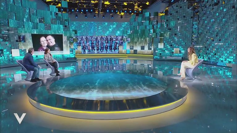 La moglie di Gabriele Cirilli, Maria gli fa una sorpresa in studio.