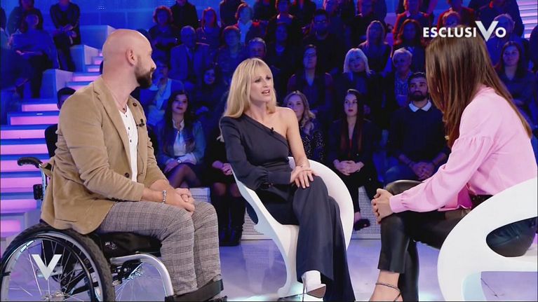 Michelle Hunziker incontra Federico Martello, il concorrente in sedia a rotelle che ha conquistato il muro di "All together now".