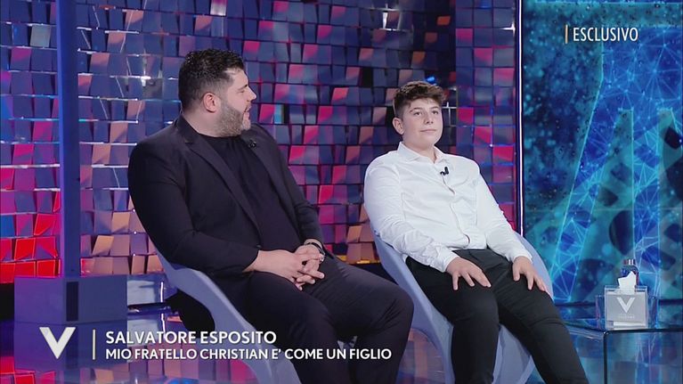Salvatore Esposito nello studio di Verissimo insieme al fratellino Christian, 24 anni più piccolo di lui.