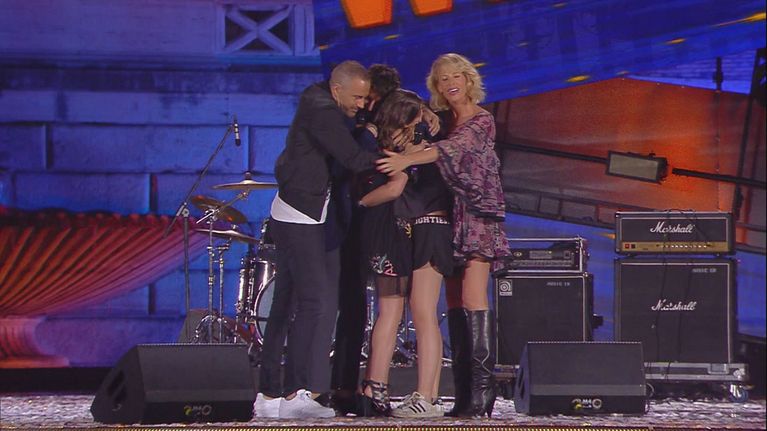 Alessia fa salire sul palco Sofia, una ragazza in lacrime per l'emozione del canto di Federica.