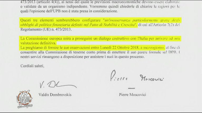 La lettera con cui Moscovici e Dombrovskis demoliscono la manovra italiana, che andrebbe contro al patto di stabilità e alla crescita.