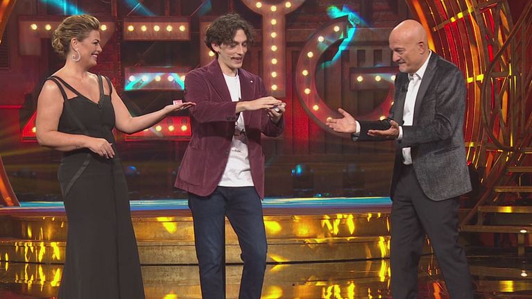 Nikolas Albanese sorprende Claudio Bisio e Vanessa Incontrada con un divertente numero di magia con le carte.