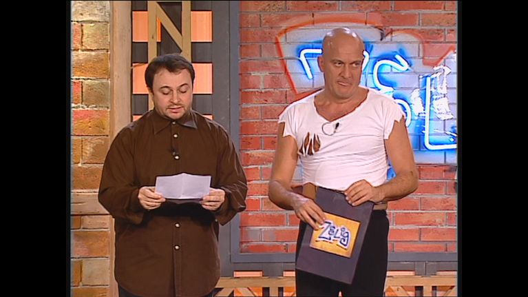 Claudio Bisio e Michelle Hunziker conducono l'undicesima puntata di Zelig 2002, con Anna Maria Barbera, Natalino Balasso, Raul Cremona, i Pai e Dispari e molti altri