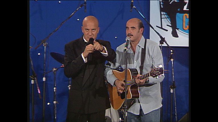 Claudio Bisio esordisce come conduttore a Zelig - Facciamo Cabaret 1997. Alla chitarra Stefano Nosei.