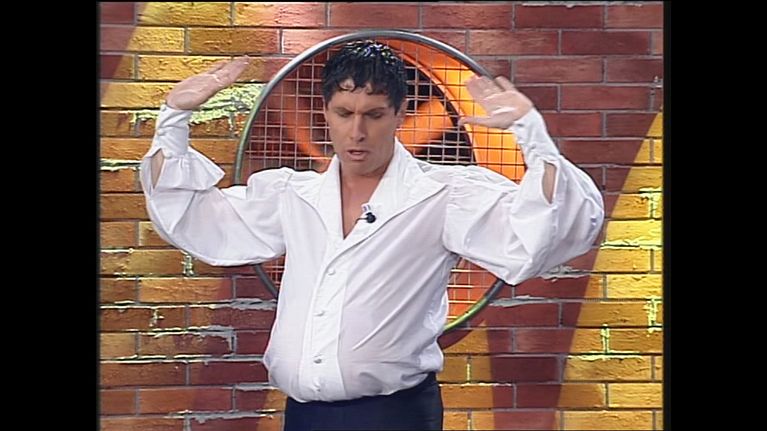 A Zelig Off 2003 Paolo Cevoli spiega le sue idee politiche ai due conduttori