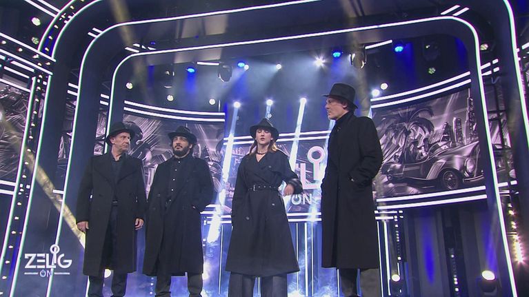 Raffaele Corti, Max Angioni, Lodovica Comello e Paolo Ruffini giocano al gioco delle Tre Carte sul palco di Zelig On.
