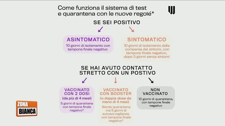 Le nuove regole per le quarantene raccolte in una grafica semplificata.