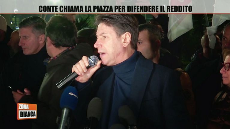 Giuseppe Conte scende in piazza per protestare contro le misure prese dal governo Meloni contro il reddito.