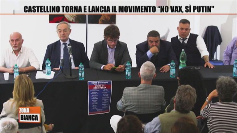 L'ex leader di "Forza nuova", Giuliano Castellino, organizza la sua resistenza e apre il convegno di matrice filorussa di "Italia libera".
