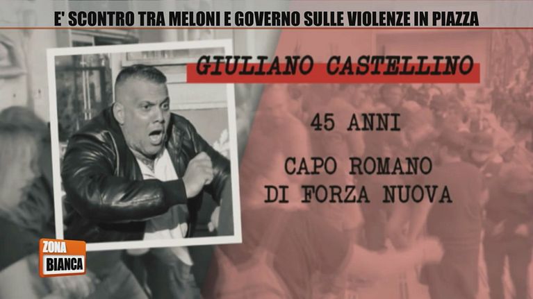 Giuliano Castellino contro un'inviata di Zona Bianca