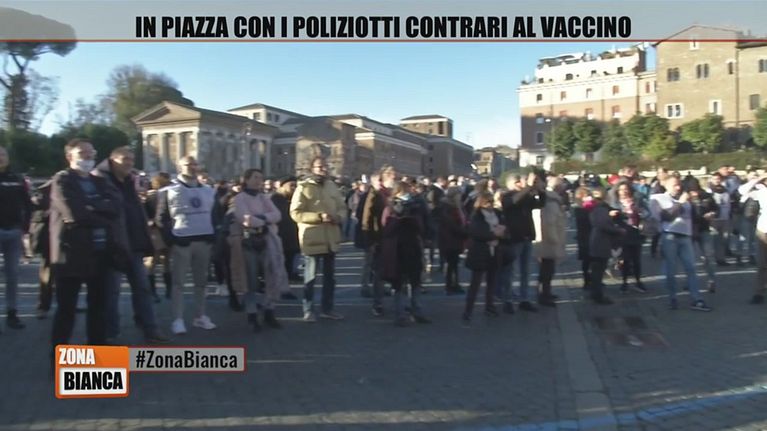 In piazza a Roma scendono anche le forze dell'ordine che sono contrarie all'obbligo vaccinale per protestare.