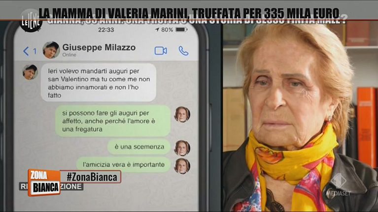 Gianna Orru, mamma di Valeria Marini, è stata truffata da Giuseppe Milazzo per 335 mila euro. In studio a Zona Bianca, la signora Orru, commenta l'accaduto.