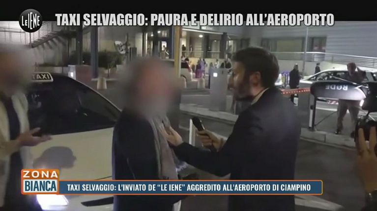 Le immagini dell'aggressione subita dall'inviato de "Le Iene" da parte di alcuni tassisti all'aeroporto di Ciampino.